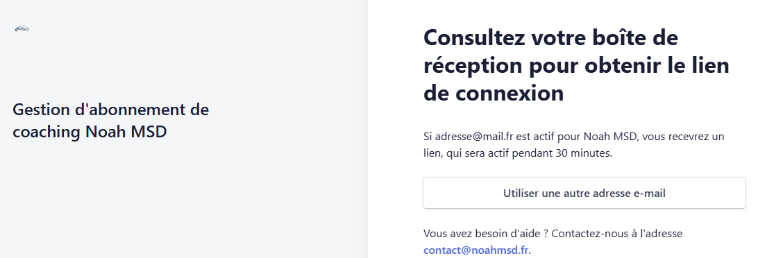 Tu recevras ensuite un lien sécurisé par e-mail pour accéder à ton espace client.