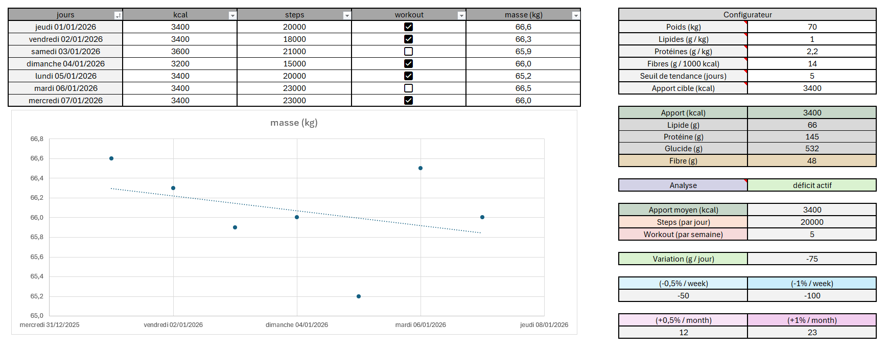 Outil Excel – Suivi intelligent du poids